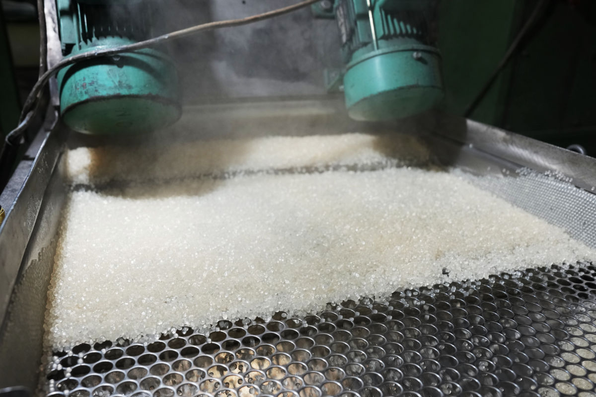 固まった樹脂を、ペレタイザーで3~5㎜程度に切断し、ペレットが完成します。